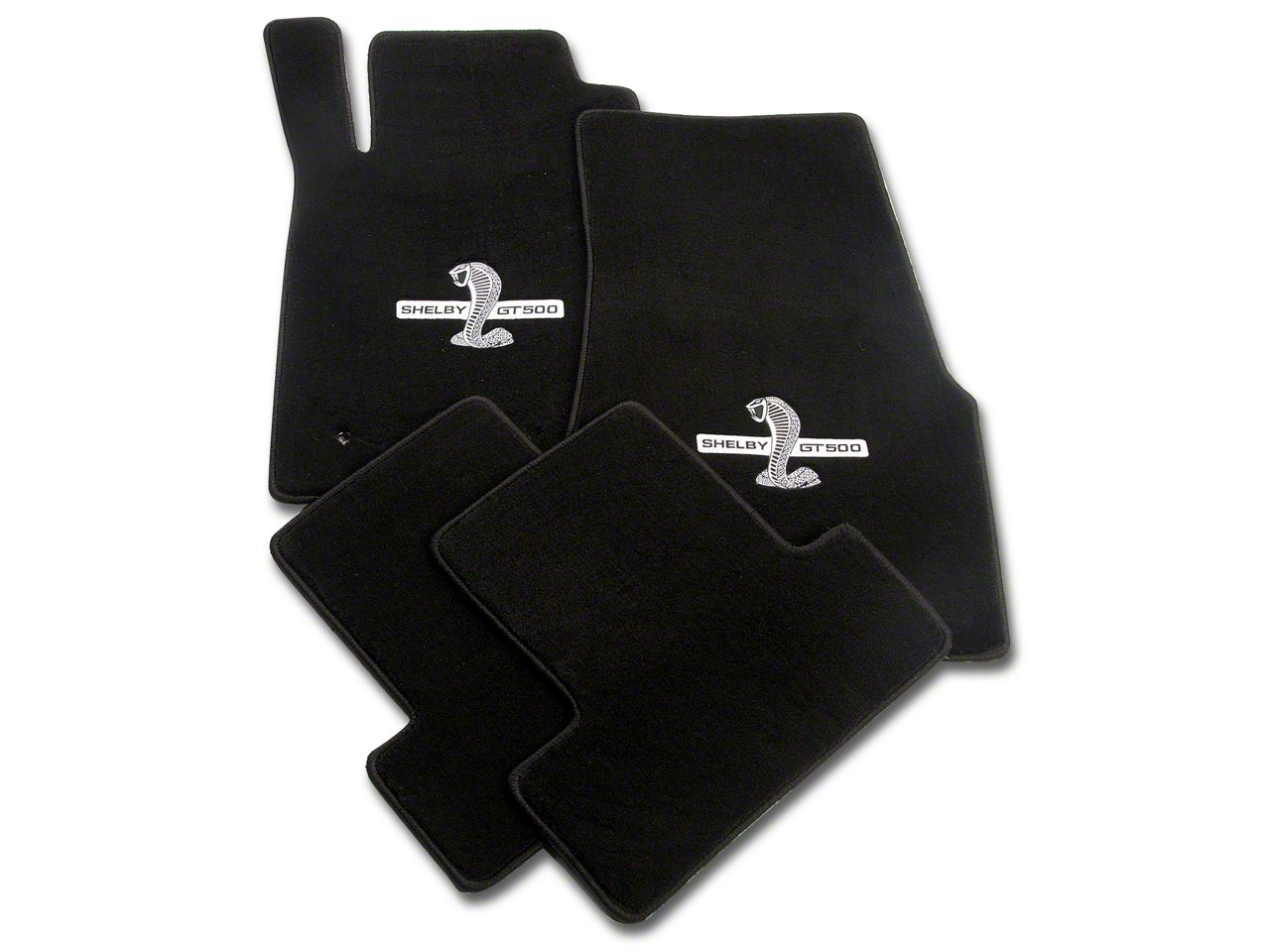 Shelby GT500 Styling. Add a touch of the mighty GT500 to your Mustang with a set of embroidered black floor mats featuring the Shelby GT500 Tiffany Snake logo. These premium quality mats will give your interior an impressive look that will make your Pony stand out from the herd.