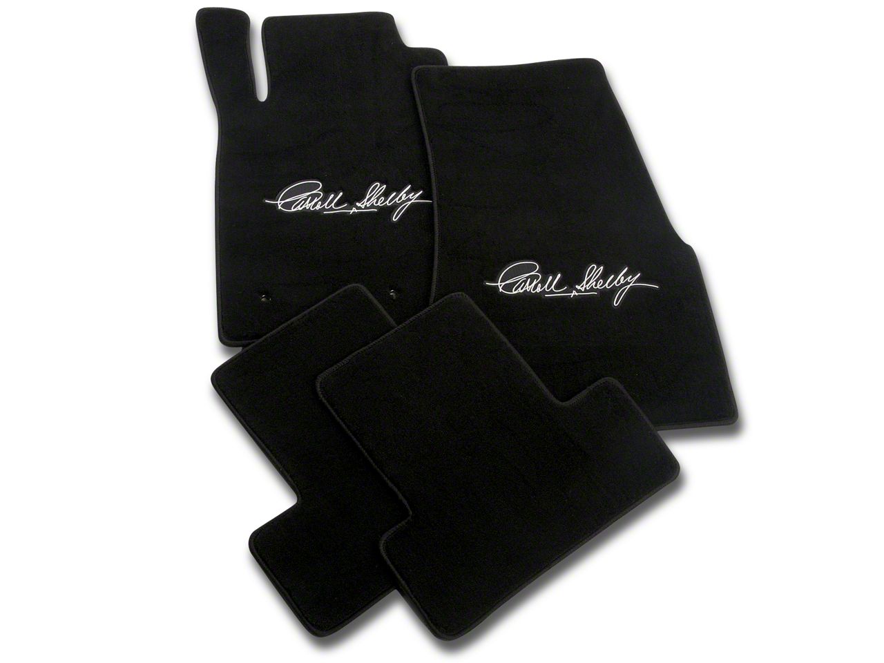 Shelby Styling. Give your Mustang's interior a unique custom look with a set of embroidered floor mats featuring Carroll Shelby's signature. These premium quality mats will give your interior an impressive look that will make your Pony stand out from the herd.