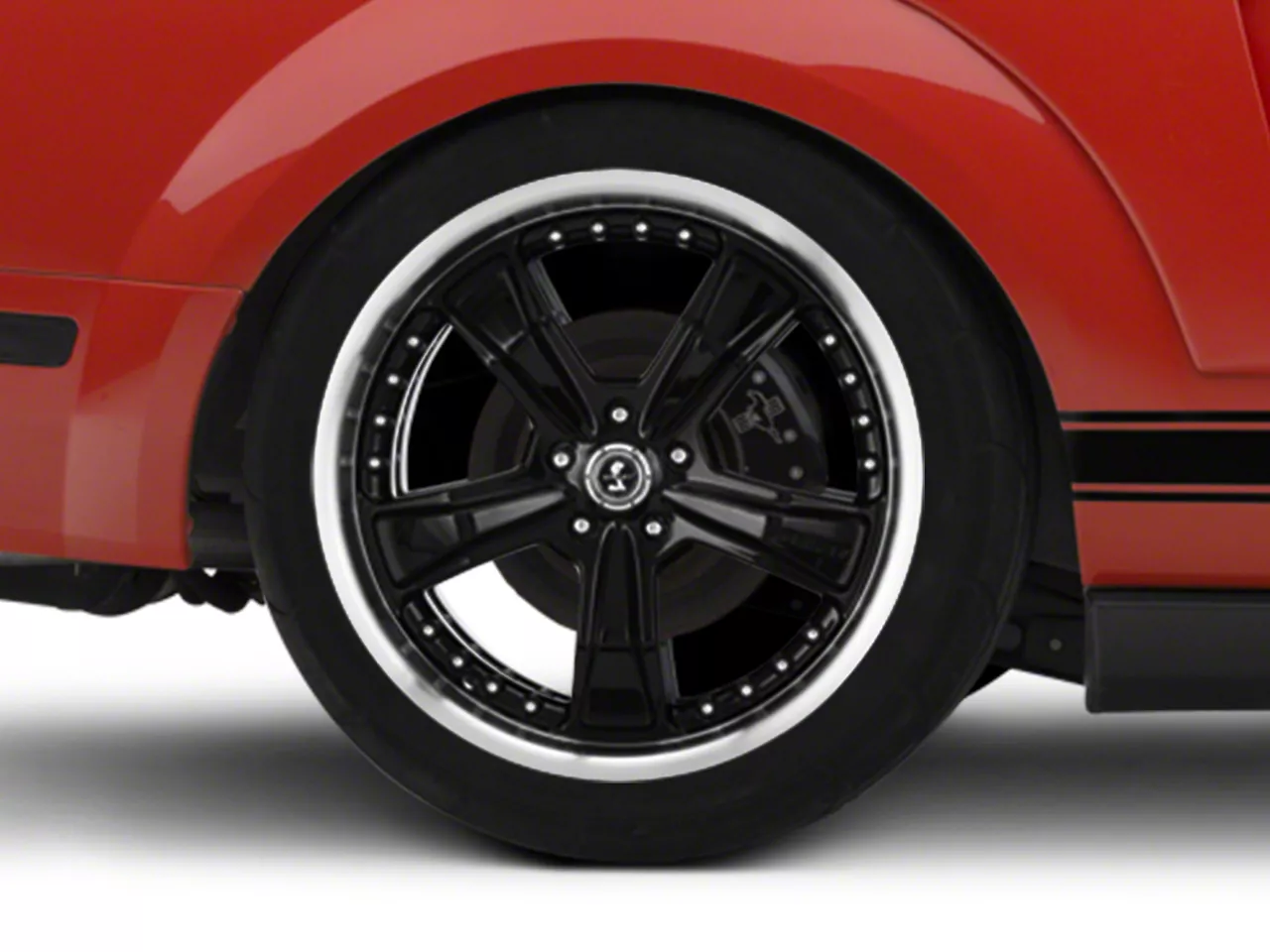 Application. This Shelby Razor Gloss Black Wheel; Rear Only; 20x10 with a backspace of 7.39 Inch, 187.8mm and bolt pattern of 5 x 114.3mm (5 x 4.5-Inch) ensures impeccable alignment and unmatched driving stability. Specifically designed for 2005-2009 Mustang models, each wheel is sold individually.