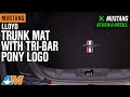 Tri-Bar Pony Logo. Add custom show car styling to your S550 Mustangs interior and impress the judges and passengers alike with this great looking premium quality carpeted trunk mat. Proudly featuring the Tri-Bar Running Pony logo superbly embroidered in red, white and blue this trunk mat will make your Pony's interior stand out from the herd of look-a-likes.
