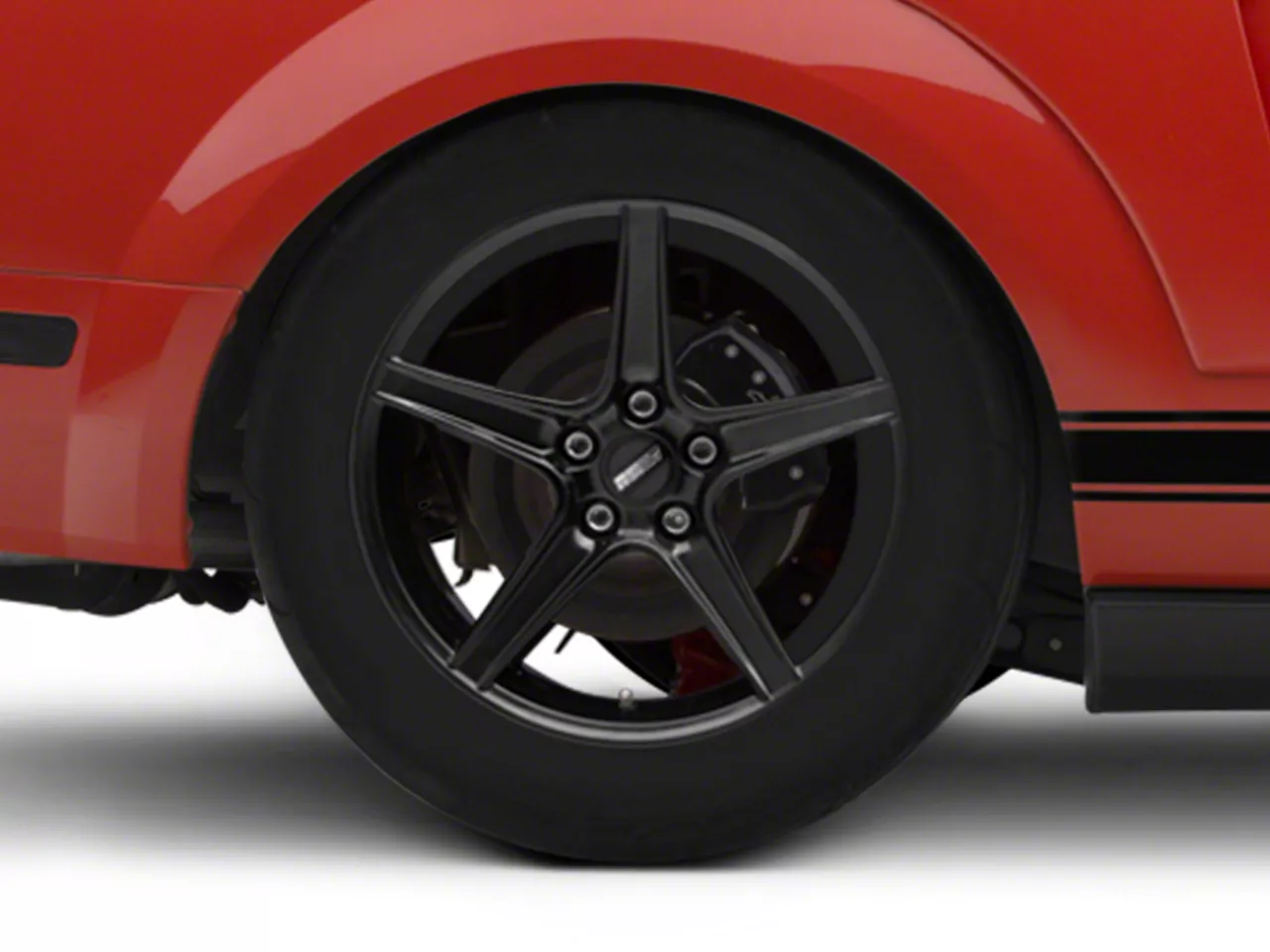 Application. This American Muscle Wheels Saleen Style Gloss Black Wheel; Rear Only; 18x10 with a backspace of 7.272 Inch, 184.8mm and bolt pattern of 5 x 114.3mm (5 x 4.5-Inch) ensures impeccable alignment and unmatched driving stability. Specifically designed for 2005-2009 Mustang GT, V6 models, each wheel is sold individually.