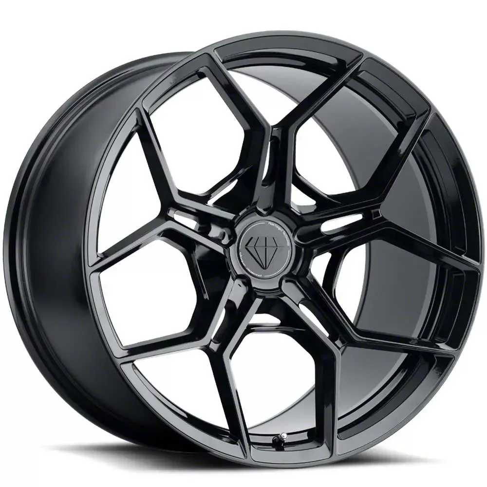 This 19x10 Blaque Diamond Wheels BD-F25 Gloss Black Wheel; Rear Only; 19x10 is completed in a high-quality gloss black finish that will make others green with envy. There is a durable clear coat that looks great and withstands the rigors of daily driving.