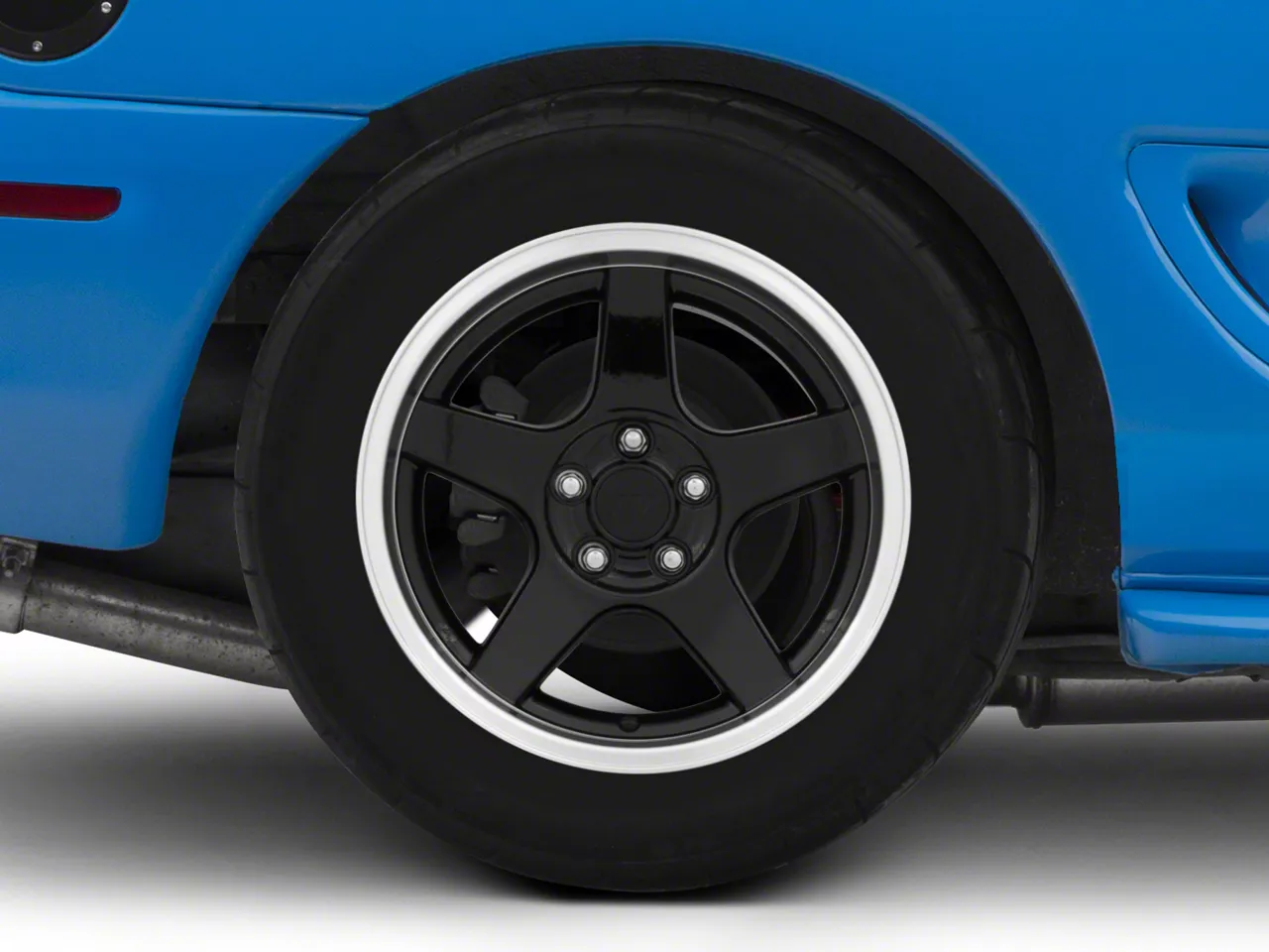 Application. This American Muscle Wheels Deep Dish 2003 Cobra Style Gloss Black Wheel; Rear Only; 17x10.5 with a backspace of 6.813 Inch, 173.1mm and bolt pattern of 5 x 114.3mm (5 x 4.5-Inch) ensures impeccable alignment and unmatched driving stability. Specifically designed for 1994-1998 Mustang models, each wheel is sold individually.