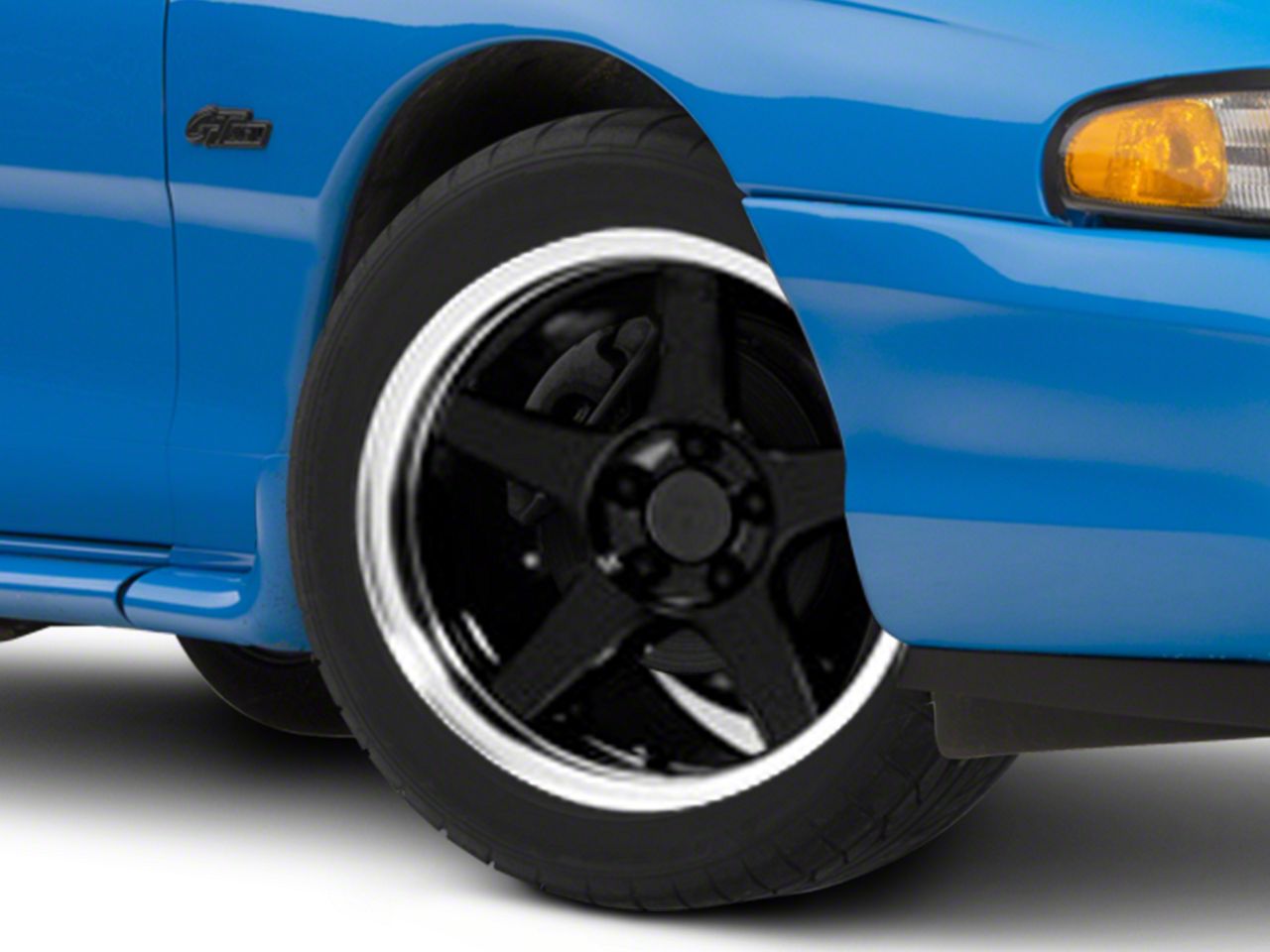 Application. This American Muscle Wheels Deep Dish 2003 Cobra Style Gloss Black Wheel; 17x9 with a backspace of 5.985 Inch, 152.1mm and bolt pattern of 5 x 114.3mm (5 x 4.5-Inch) ensures optimal alignment, unparalleled driving stability, and an impeccable fit with your vehicle. It is designed to fit the 2094-2098 Mustang models. Sold individually.