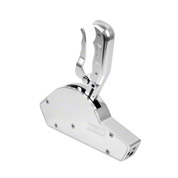 Automatic Model For 2 to 4 Speed Transmissions. This B&M Street Bandit Gated Shifter is crafted for the 5.0L Mustang, offering a sleek, polished chrome finish and ergonomic Magnum Grip design for a comfortable movement. It's engineered for 2 to 4 speed automatic transmissions and is CNC machined from 6061-T6 aluminum, ensuring durability and precision shifting.