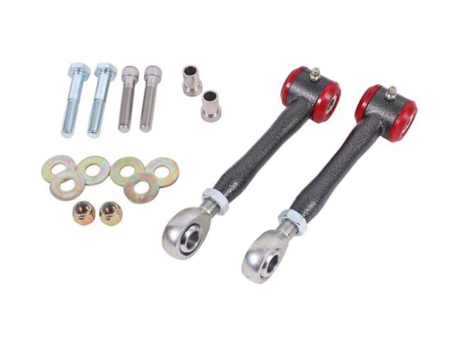 Improved Handling. Maximize the sway control and handling precision of your Camaro with the BMR Adjustable End Link Kit for Rear Sway Bar; Black Hammertone. The adjustable length design allows for a customizable setup, enabling you to fine-tune your vehicle's handling to match your driving style and conditions. Whether you're carving corners on the track or navigating the streets, this kit ensures improved sway control and reduced suspension flex for a more responsive and controlled driving experience.
