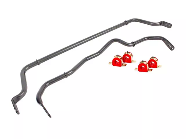 High Quality Structure. Upgrade your vehicle's handling and cornering capabilities with the BMR Adjustable Front and Rear Sway Bars. This set includes both front and rear sway bars, featuring a three-way adjustable design that allows you to fine-tune your vehicle's suspension to suit your driving preferences and road conditions. Crafted from premium 1.25-inch heavy-wall DOM tubing, these sway bars provide exceptional strength and durability, ensuring improved stability and reduced body roll during aggressive maneuvers. The black hammertone finish not only adds a sleek and stylish touch but also protects the sway bars from harmful elements, maintaining their performance and appearance over time.