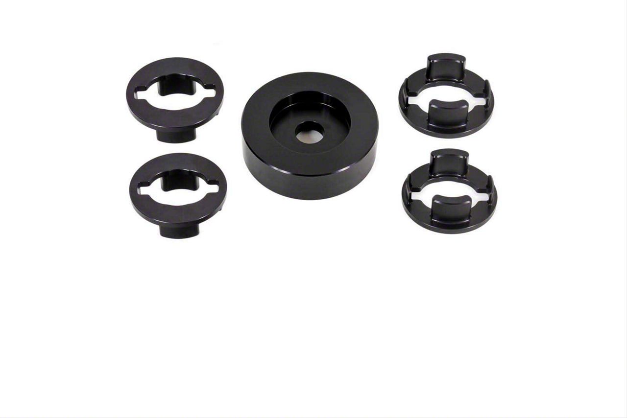 Stability. Enhance your driving experience with the BMR Differential Lockout Bushing Kit; Aluminum; Black Anodized. This kit is designed to minimize wheel hop and elevate rear stability in your 2016 and newer Chevrolet Camaro. By reducing differential movement and pinion rise, it significantly improves your vehicle's handling, making it ideal for street performance, drag races, and various handling applications.