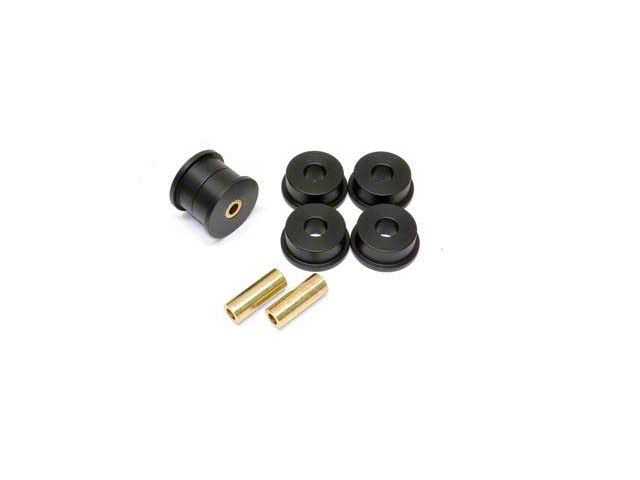 Description. Eliminate differential bushing deflection and minimize wheelhop with Delrin differential bushings from BMR Suspension. Delrin is a synthetic polymer that has many properties that make it far superior to OEM rubber bushings. Delrin is a solid polymer that eliminates deflection in comparison to soft rubber. BMR’s Delrin differential bushings (BK026) drastically increase differential stability over the factory rubber bushings. The bushings are machined from solid Delrin, which eliminates bushing deflection. Designed for extreme performance street, drag race, and handling applications, BMR Differential Bushings minimize power robbing differential movement by replacing the OE soft rubber bushings with solid Delrin bushings. The Delrin bushings effectively eliminates differential bushing deflection, which contributes to wheelhop. BMR differential bushings should be considered an absolute must for any type of high performance driving. BMR Suspension’s BK026 Differential Bushing Kit is available in black. Installation time is about 4-5 hours and may vary depending on stock bushing removal technique. Proudly made in the U.S.A.!