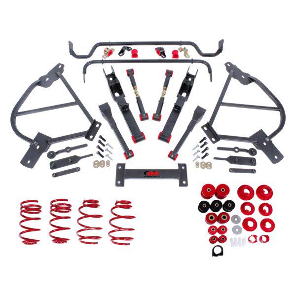 Full Level 4 Handling Kit. Made for the Chevrolet Camaro SS, this BMR Handling Package is a full stage 4 handling kit that comes complete with sway bar kits, lowering springs, bushing kits, subframe connectors, a driveshaft tunnel brace, toe-rods, trailing arms, and control arms for an all-round upgrade to your vehicles entire suspension system.