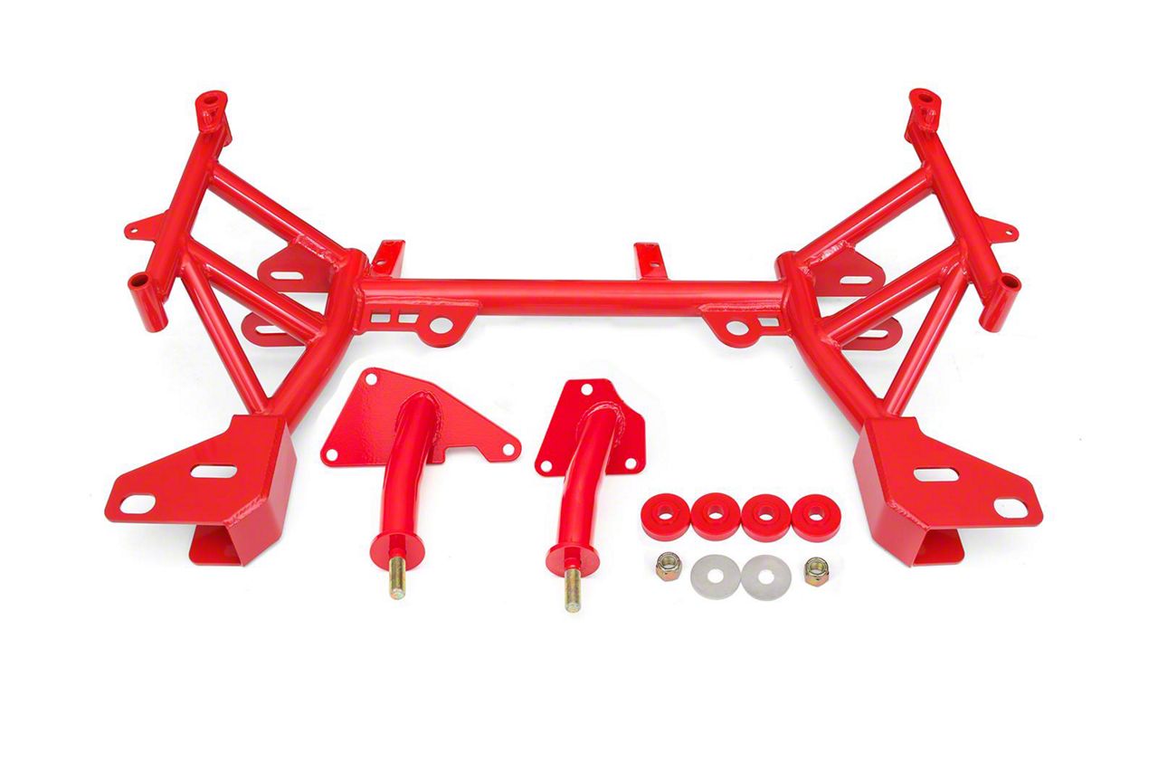 Durable and Lightweight Alternative. Constructed from robust 1-5/8-inch x 0.120 wall and 1-1/4-inch x 0.095 wall DOM tubing, the BMR K-Member offers a lightweight yet sturdy alternative to standard factory K-members. Its striking red powder-coated finish not only enhances durability but also adds a bold aesthetic touch to your vehicle. The package includes all necessary hardware for a hassle-free, direct bolt-on installation, ensuring a quick and efficient upgrade to your driving experience.