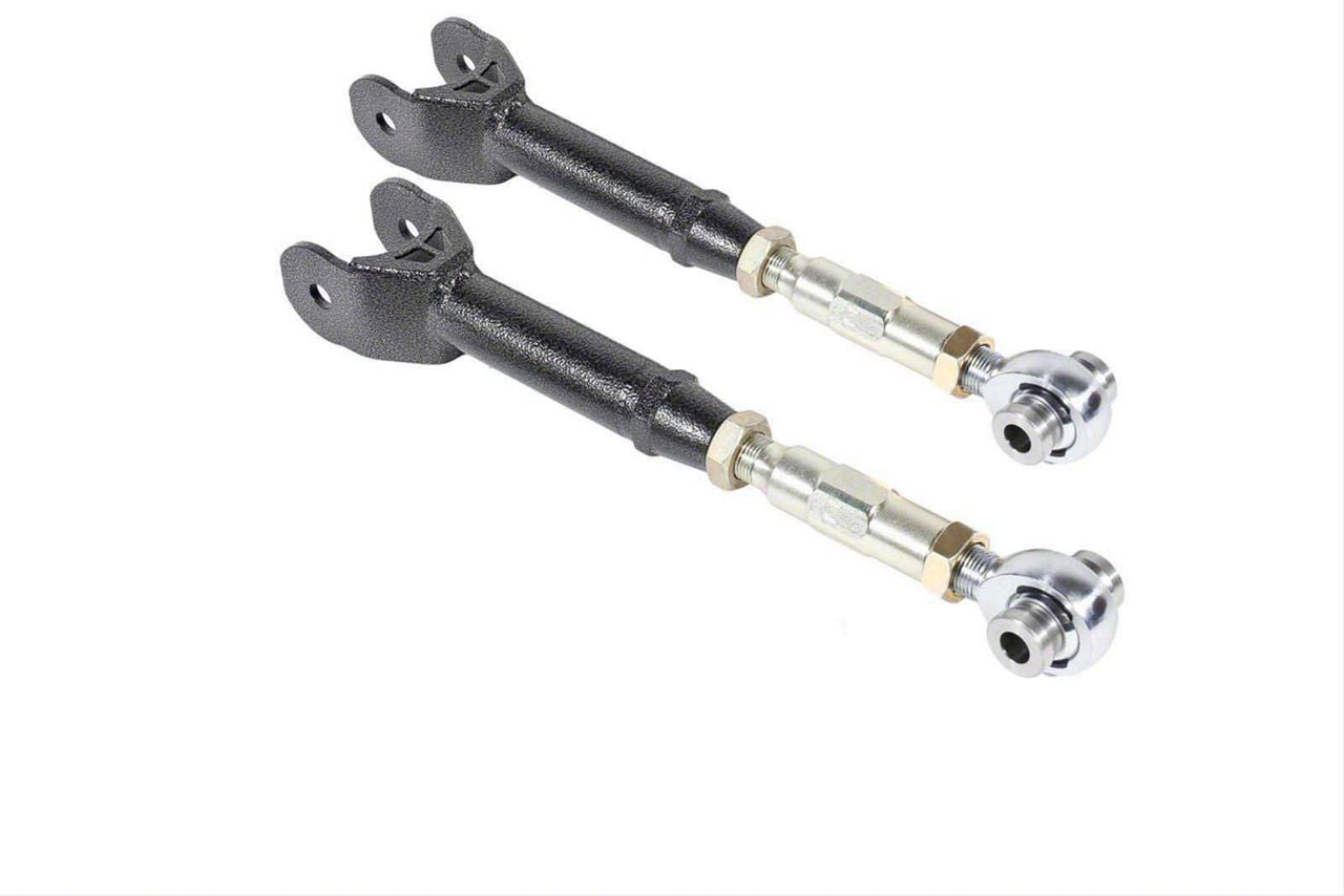 Performance Suspension Upgrade. The BMR On-Car Adjustable Rear Upper Control Arms with rod ends in Black Hammertone improve launch capabilities, reduce wheel hop, and increase cornering consistency to enhance vehicle control. Designed as direct replacements for stock stamped steel arms, they transfer power more effectively to the tires, resulting in superior traction and handling.