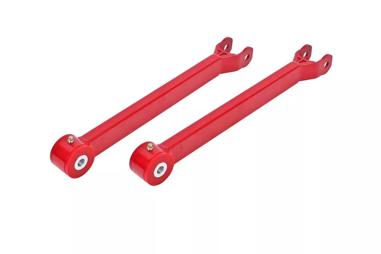 Reliable. The BMR Non-Adjustable Rear Lower Trailing Arms help greatly reduce a problem called wheel hop. Wheel hop happens when the rear wheels bounce up and down too much while you're trying to go fast or speed up quickly. These arms make the back suspension stronger and provide extra help. This helps the vehicle's power to move better on the road, making the wheels hop less and giving a better grip.