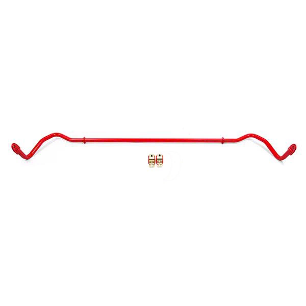 Performance and Handling. Introducing the BMR Non-Adjustable Rear Sway Bar (22mm, Red) - the ultimate solution for enhancing your vehicle's performance and handling. Designed for street, autocross, and road race use, this sway bar is engineered to deliver impressive results. With its non-adjustable design, the BMR Rear Sway Bar (22mm) provides consistent performance characteristics, ensuring significant reduction in body roll during sharp turns and aggressive maneuvers. This translates to improved stability and control on the road or the track.
