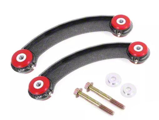 I-Beam Style. The trailing arms feature an I-beam style design, which ensures not only strength but also reduced weight, optimizing your vehicle's performance. Each set includes all the necessary hardware for installation, making it a convenient and straightforward upgrade. The arms are outfitted with polyurethane bushings, which offer improved longevity and performance over standard rubber bushings.