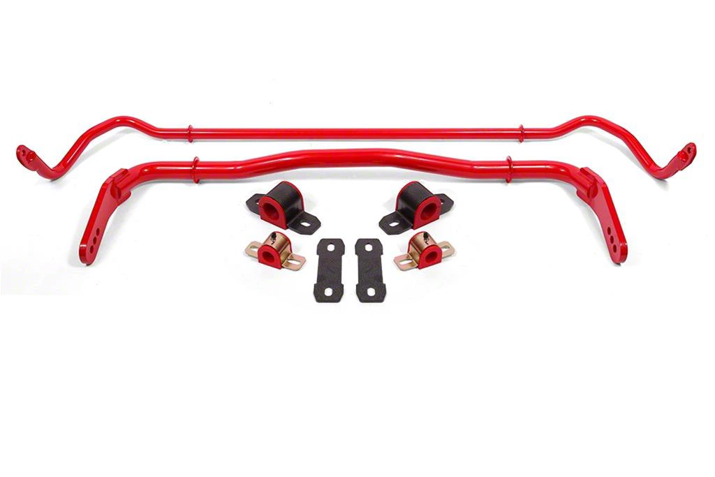 Stable and Efficient. For a smoother and more controlled driving experience, upgrade your sway bar with the BMR Adjustable Front and Non-Adjustable Rear Sway Bar in Red. This kit features an Adjustable Front Sway Bar and a Non-Adjustable Rear Sway Bar, both engineered to reduce body roll and improve stability during cornering.