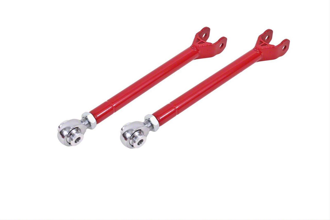 Superior Handling. Enhance the performance of your vehicle with BMR Single Adjustable Rear Lower Trailing Arms; Rod Ends; Red. Designed to reduce wheel hop and provide consistent cornering, these heavy-duty trailing arms are the key to elevating your driving experience. Whether you're hitting the street, drag strip, or racetrack, these trailing arms eliminate flex, delivering superior handling and articulation for a smoother and more predictable ride.