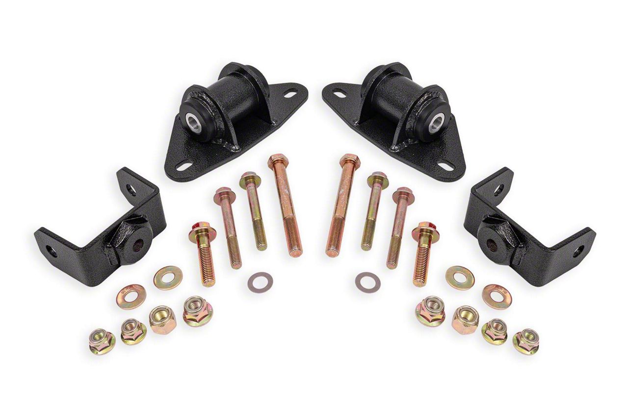 Durable and High-Quality Construction. Featuring Delrin bushings and a sleek black hammertone finish, this motor mount kit is engineered for long-term durability and reliability. The bushings offer superior resistance to wear and deformation, ensuring that your engine remains stable under extreme conditions. Whether you're on the track or the street, this motor mount kit ensures better power transfer and vehicle control.