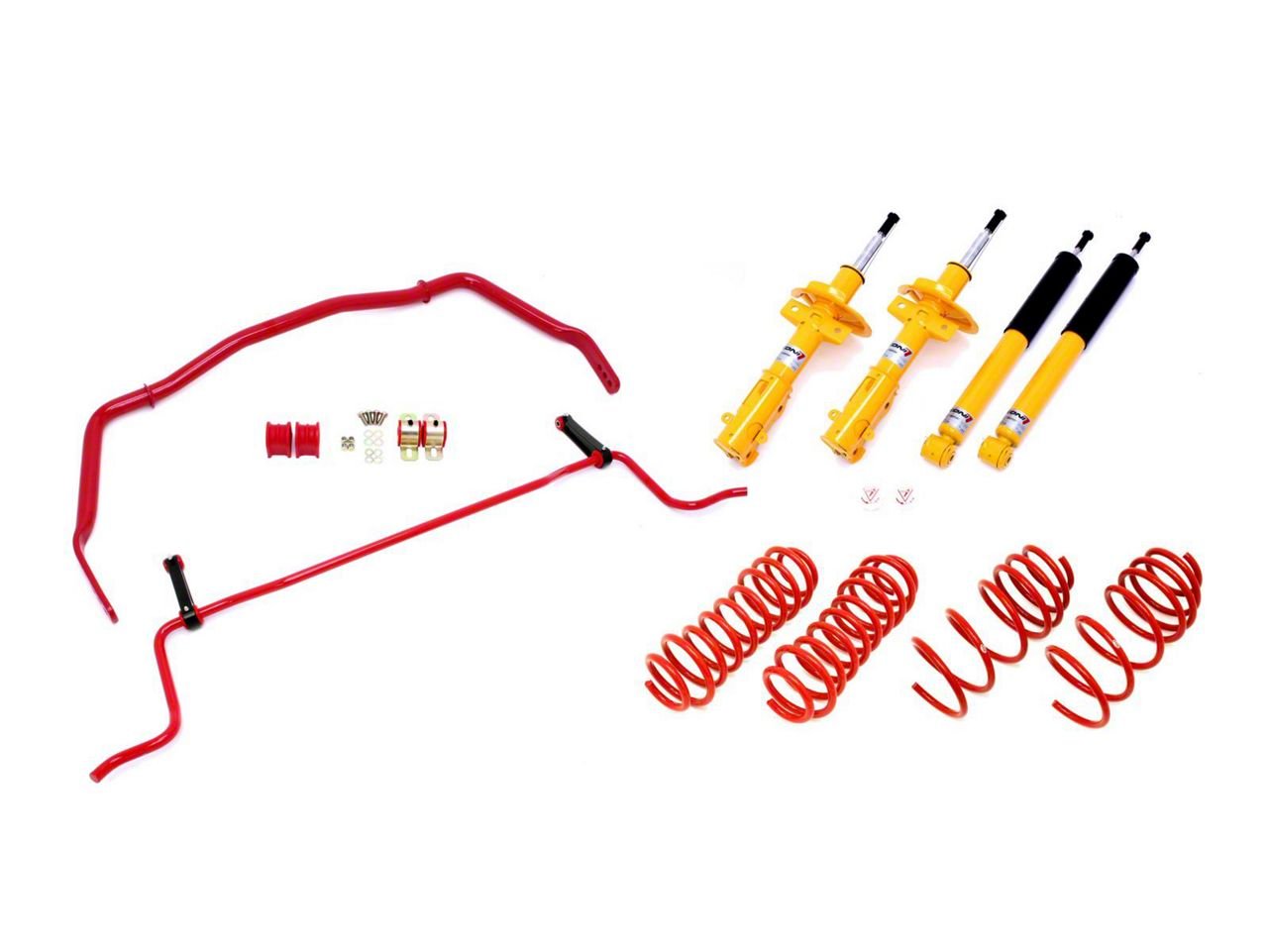 Experience the Feeling of a Custom Upgrade. The BMR Koni Adjustable Handling Performance Package (Level 4) has been carefully engineered to be the perfect combination of different parts for your specific make and model, so you can experience a custom-level upgrade like never before. Your Mustang will step up its handling game, and you’ll see improvements in performance, ride comfort, and aesthetics. The package includes all the key parts to pump up performance: shocks, lowering springs, and sway bar kids for both the front and rear.