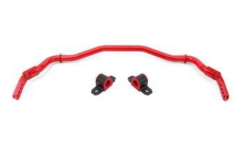 Construction and Appearance. Crafted from cold-formed 38mm DOM steel tubing, the BMR Adjustable Front Sway Bar is built for durability and performance. It features a striking "Racing Red" powder coat finish, enhancing its appearance and providing additional protection against corrosion.