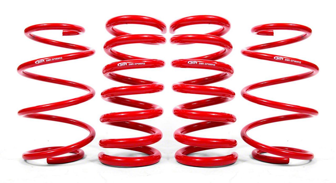 Precision Engineering. Built to be a direct fit for your Mustang, BMR’s lowering springs boast a standard linear spring rate with 150 pounds per inch in the front and 800 pounds per inch in the rear.