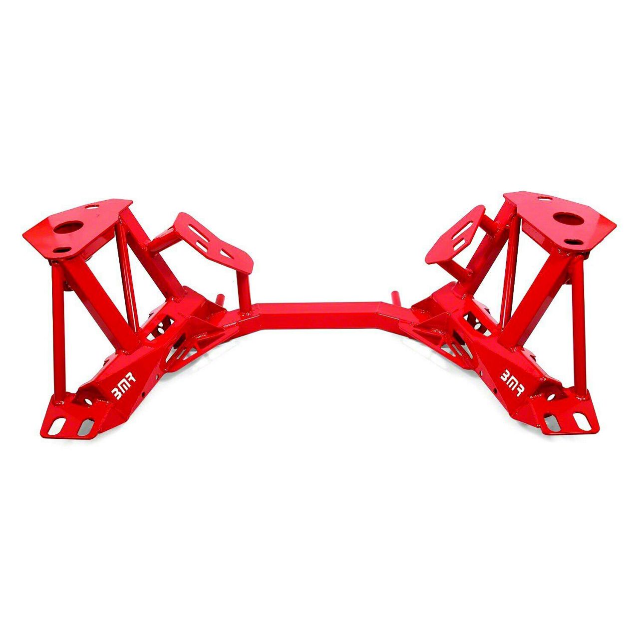 Superb Racing Performance. This Red BMR K-Member with Spring Perches, Premium Version significantly enhances your performance car’s street and drag racing capability. It is extremely lightweight, a design that greatly enhances weight transfer and traction. This K-member also allows performance modifications with its extra clearance and is designed to work with factory steering racks to maintain your car’s factory steering geometry.