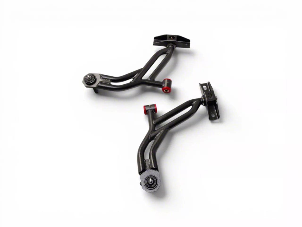 Heavy-Grade Build Quality. These front lower control A-arms get their strength from heavy-grade tubular steel construction which also helps reduce weight. These steel tubes are then CNC mandrel-bent and welded, further increasing rigidity while ensuring an accurate fit when installed. Finally, these components receive a black hammertone powder coat finish for sleek looks and superior protection against rust.