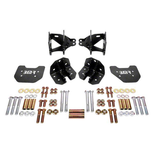 Efficient Coil-Over Conversion. Converting your lowered Mustang’s coil spring setup to coilover shocks used to be a tedious process as this would often require fabrication. The Black Hammertone BMR Rear Coil-Over Conversion Kit with Control Arm Brackets changes all that. This rear conversion kit includes precisely designed and engineered components, permitting the correct installation of a pair of rear coil-overs without the hassle that comes with fabrication. Moreover, the included lower coil-over mounting brackets also work as control arm relocation brackets that enable you to adjust your ride’s rear suspension geometry. By adjusting your rear geometry, this kit actually eliminates squat for improved handling.