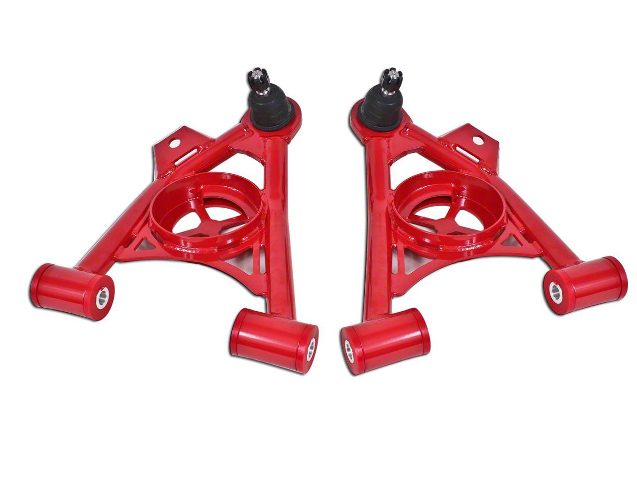 Ideal Drive. Thanks to BMR's Red Non Adjustable A-Arms with Polyurethane Bushings, your 1979-1993 Mustang will be in a better position than ever before to deliver a superior drive and improved handling. By creating a direct link between the chassis and the front wheels, these A-arms are able to ensure a great drive feel and superior alignment.