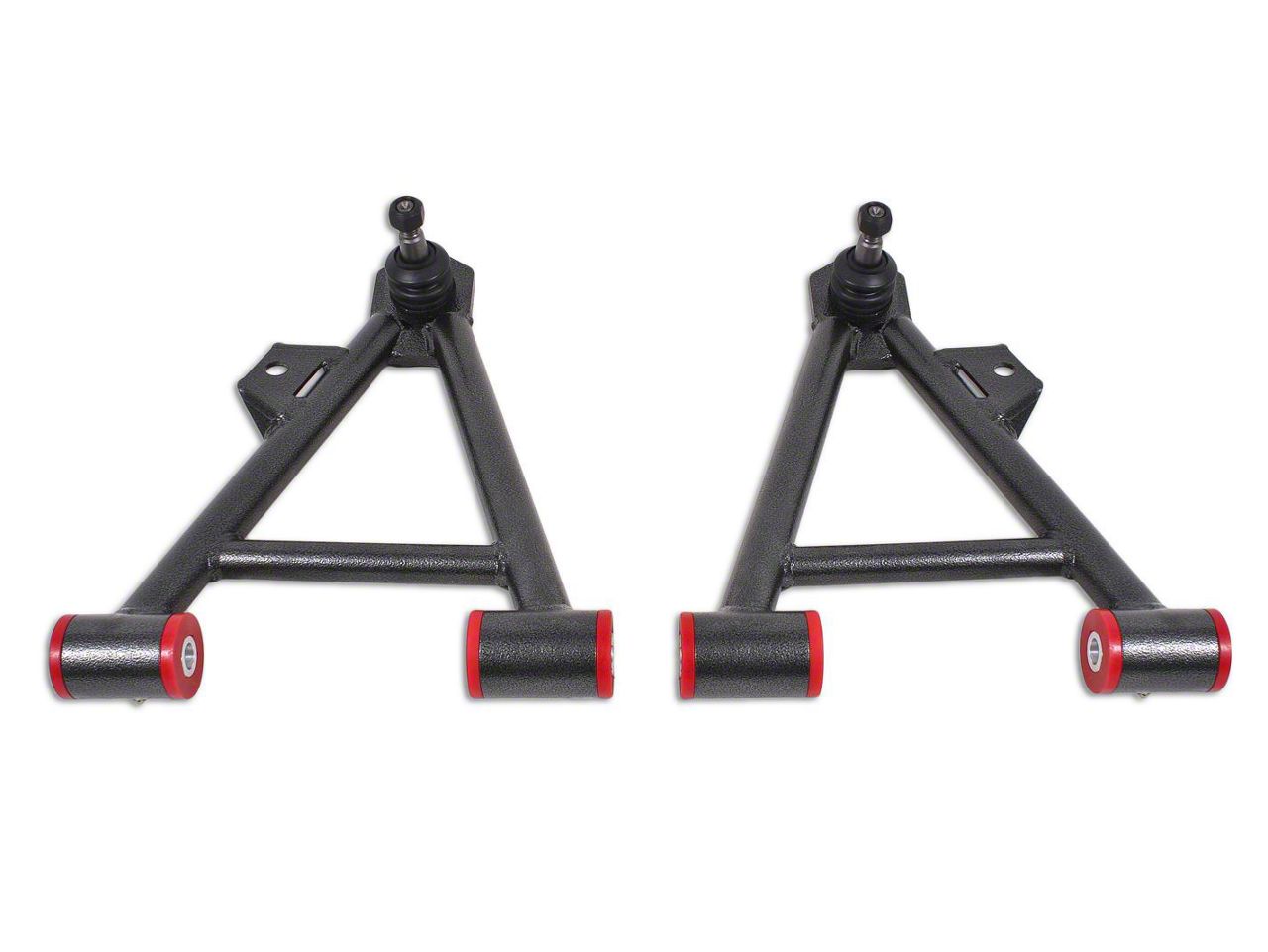 High Quality Construction. The Hammertone BMR Front Lower Non-Adjustable Coil-Over A-Arms are built from DOM 0.095” wall steel tubing with high durable and greasable polyurethane bushings that deliver a more responsive feel compared to the stock rubber bushings. The result is reduced arm bushing flex, improved handling on the street and better launches on the track as well as superior performance on rough terrain. The arms are finished in a durable Hammertone Powder coat for style accents and enhanced durability.