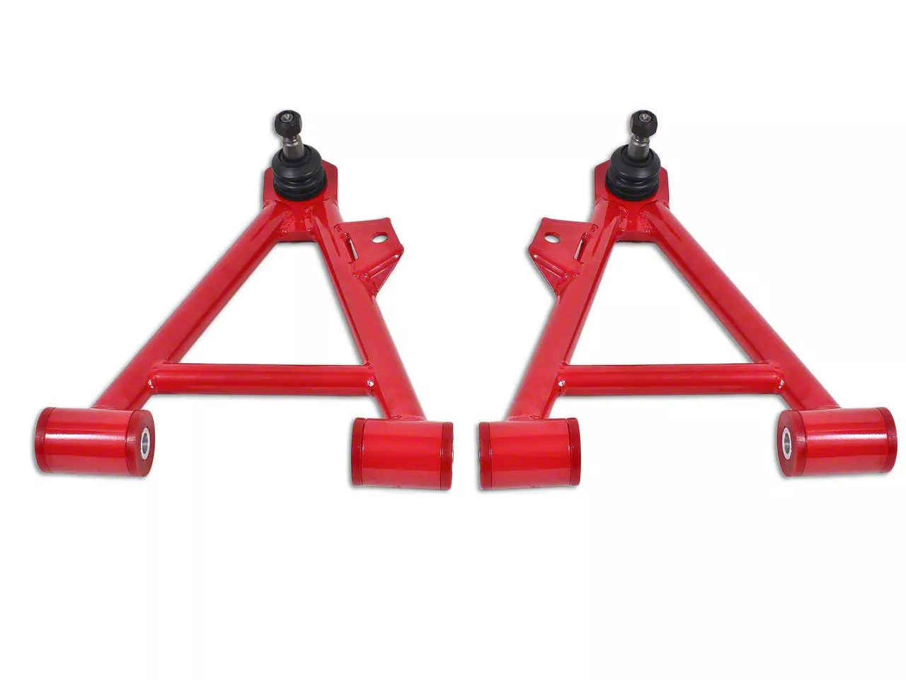_x000D__x000D_Construction and Appearance. Constructed from heavy-duty 1.5-inch and 1.25-inch DOM steel tubing, these A-arms are fixture welded to ensure a precise fit and durability. They feature greasable 95-durometer polyurethane bushings that offer a solid yet comfortable ride by replacing the stock rubber bushings. A durable red powdercoat finish provides long-lasting corrosion resistance and an aggressive look.