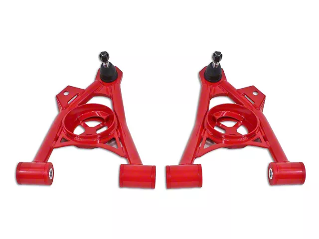 Top Quality Construction. The Hammertone BMR Front Lower Non-Adjustable Spring Pocket A-Arms are built from DOM 0.095” wall steel tubing with high durable and greasable polyurethane bushings that deliver a more responsive feel compared to the stock rubber bushings. The result is reduced arm bushing flex, improved handling on the street and better launches on the track as well as superior performance on rough terrain. The arms are finished in a durable Hammertone powder coat for style accents and enhanced durability.