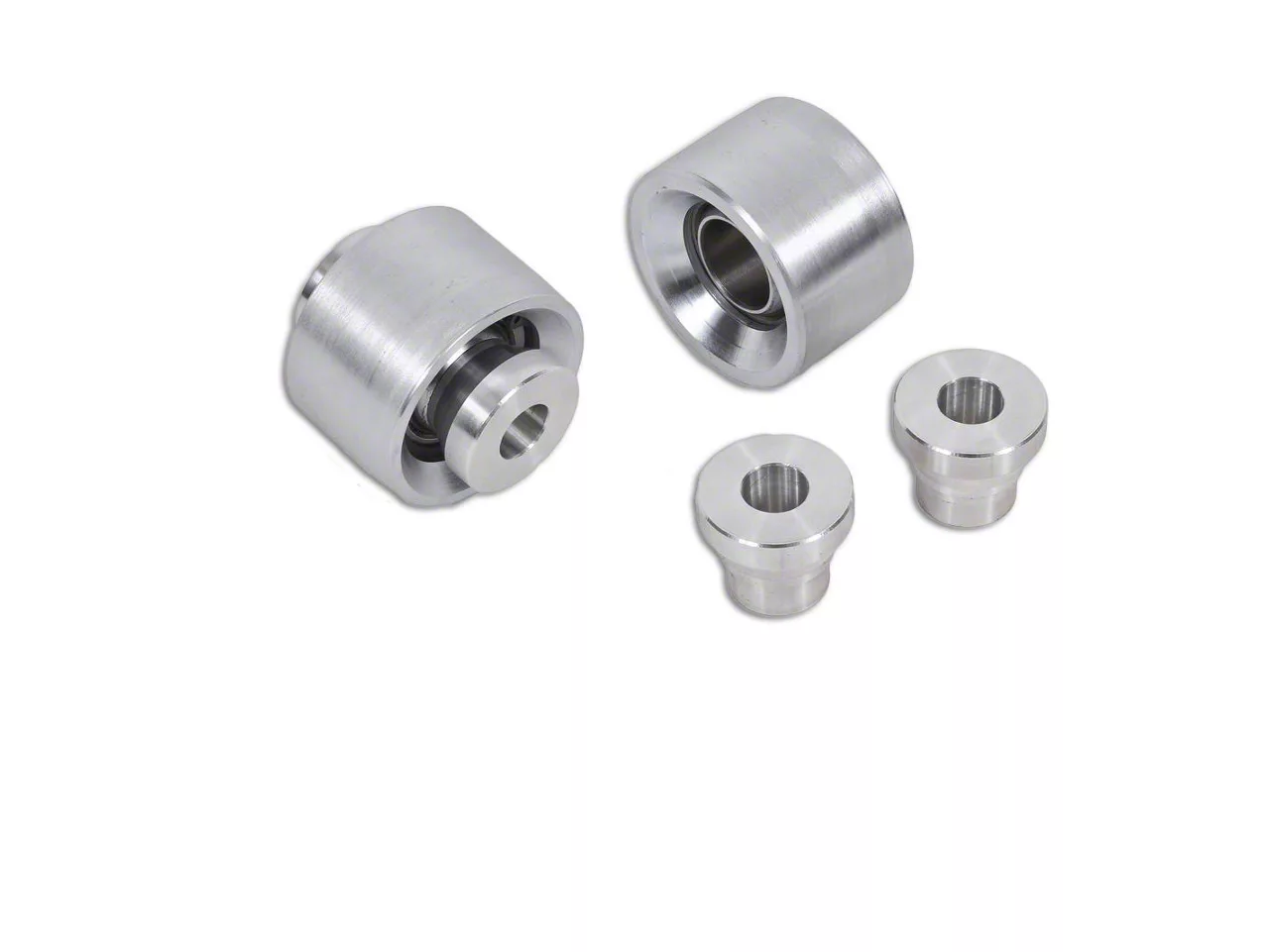 High Quality Construction. The BMR Standard Rear Lower Control Arm Bearing Kit feature heavy duty 1” spherical bearings built to offer extreme strength and durability. They have an active load rating of 82,800 pounds with a center ball diameter of 1.5” that can handle all power levels. The bearings are coated with zinc for durability. For the spacers, they are CNC machined from billet aluminum ensuring that they are a perfect fit. The result is reduced arm bushing flex, improved handling on the street and better launches on the track as well as superior performance on rough terrain. The spacers are completed with a bare finishing that enhances their durability.
