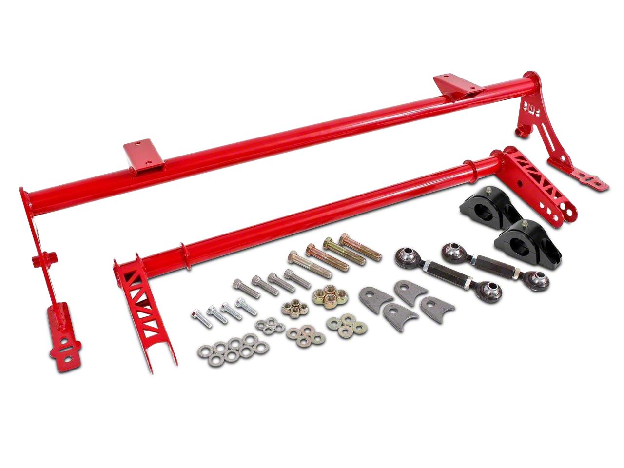 Durable, Lightweight Construction. BMR crafts their Xtreme Anti-roll Bar Kit right here in America using 1.375-inch heavy-wall DOM tubing, CNC-machined Delrin sway bar bushings and laser-cut steel. That combination - along with a hollow design - gives you the ideal balance of light weight and durability you need to cross the finish line first. Each piece is powder coated in red for a hot look.
