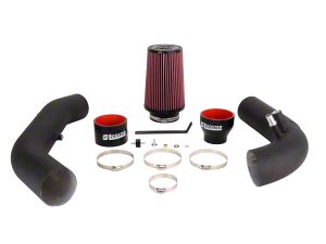 Construction and Appearance. Built with a mandrel-bent aluminum intake tube and powder-coated for durability, this system features a reusable red oiled air filter that maximizes filtration and airflow. The included heat shield helps isolate the intake from engine bay heat, ensuring cooler, denser air reaches your turbocharger.
