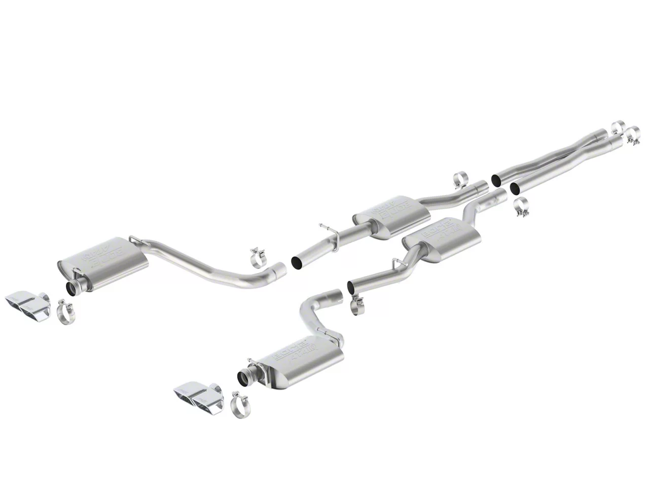 Aggressively Thunderous Racing Sound. The Borla ATAK Cat-Back Exhaust produces incomparably aggressive racing exhaust notes, allowing the Challenger to dominate any road. This remarkable racing growl is a product of Borla's Acoustically-Tuned Applied Kinetics (ATAK) technology that creates the highest legal decibel levels of exhaust sound – the most aggressive series in Borla's exhaust lineup.