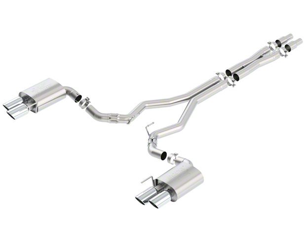 Improved Performance. The Borla ATAK Cat-Back Exhaust not only helps in creating a deep sound for your Ford Mustang, but it also helps improve performance. The kit utilizes an X-Pipe and wide, 4-inch exhaust tips designed to improve the flow of air. The end result is a noticeable increase in both torque and horsepower.