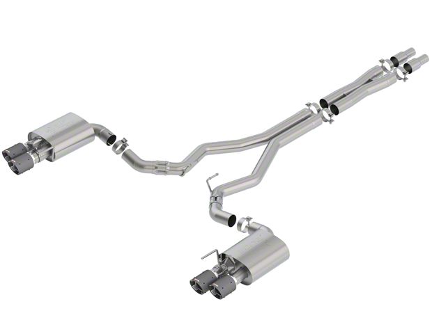 Quality Construction. This cat-back exhaust is manufactured to ensure high-quality performance and long-lasting durability. The assembly is made from smooth, 3-inch diameter, mandrel-bent stainless steel that guarantees corrosion resistance and endurance. The x-pipe and carbon fiber tips offer long-lasting service, while the embossed Borla logo adds to the overall look.