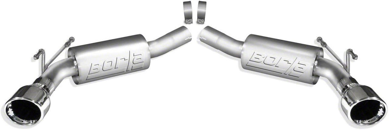 Premium Stainless Steel Construction. Borla manufactures their exhaust systems from premium 304 stainless steel tubing for superior strength and enduring corrosion resistance. Featuring ultra smooth mandrel bent 2.5-inch diameter piping and straight-through ATAK mufflers, this Borla Axle-Back will significantly out flow your Camaro's original factory exhaust system. This system also includes a pair of 4.5-inch polished T-304 stainless steel exhaust tips for impressive good looks.