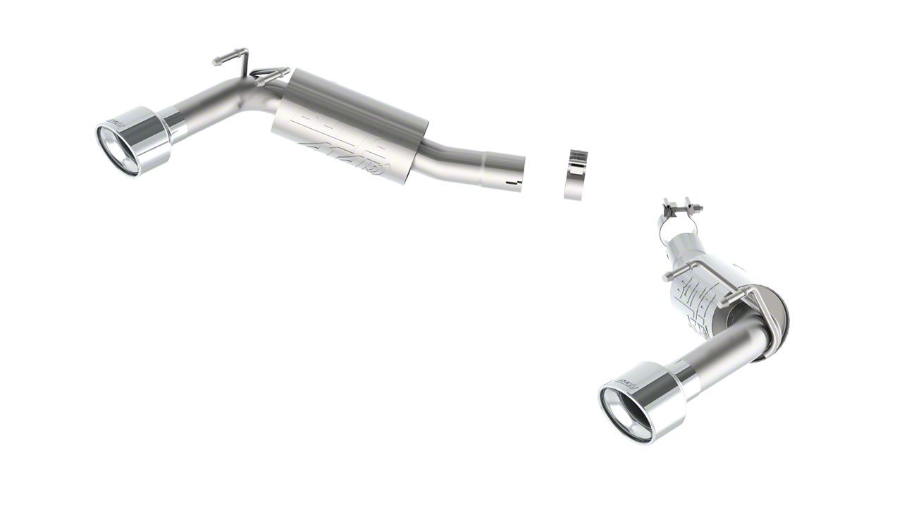 Premium Stainless Steel Construction. Borla manufactures their exhaust systems from premium 304 stainless steel tubing for superior strength and enduring corrosion resistance. Featuring ultra smooth mandrel bent 2.5-inch diameter piping and straight-through ATAK mufflers, this Borla Axle-Back will significantly out flow your Camaro's original factory exhaust system. This system also includes a pair of 4.5-inch polished T-304 stainless steel exhaust tips for impressive good looks.