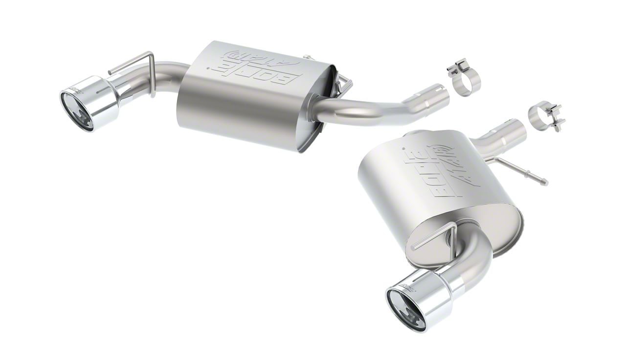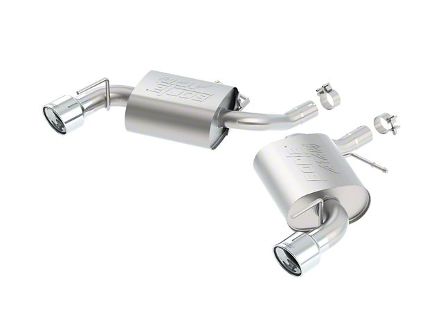Premium Stainless Steel Construction. Borla manufactures their exhaust systems from premium 304 stainless steel tubing for superior strength and enduring corrosion resistance. Featuring ultra smooth mandrel bent 2.25-inch diameter piping and straight-through ATAK mufflers, this Borla Axle-Back will significantly out flow your Camaro's original factory exhaust system. This system also includes a pair of 4.5-inch polished T-304 stainless steel exhaust tips for impressive good looks.