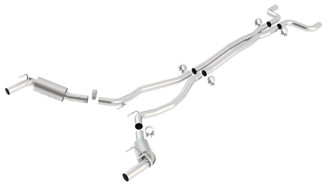 Direct Bolt-On Installation. Borla engineered their Cat-Back Exhaust to be a direct bolt-on upgrade replacement. This Exhaust System will easily mount in the stock location with no cutting or extra modifications required. Installation of this Cat-Back can be completed in about two to three hours with just basic hand tools. This Cat-Back will reuse the existing factory hangers for installation.
