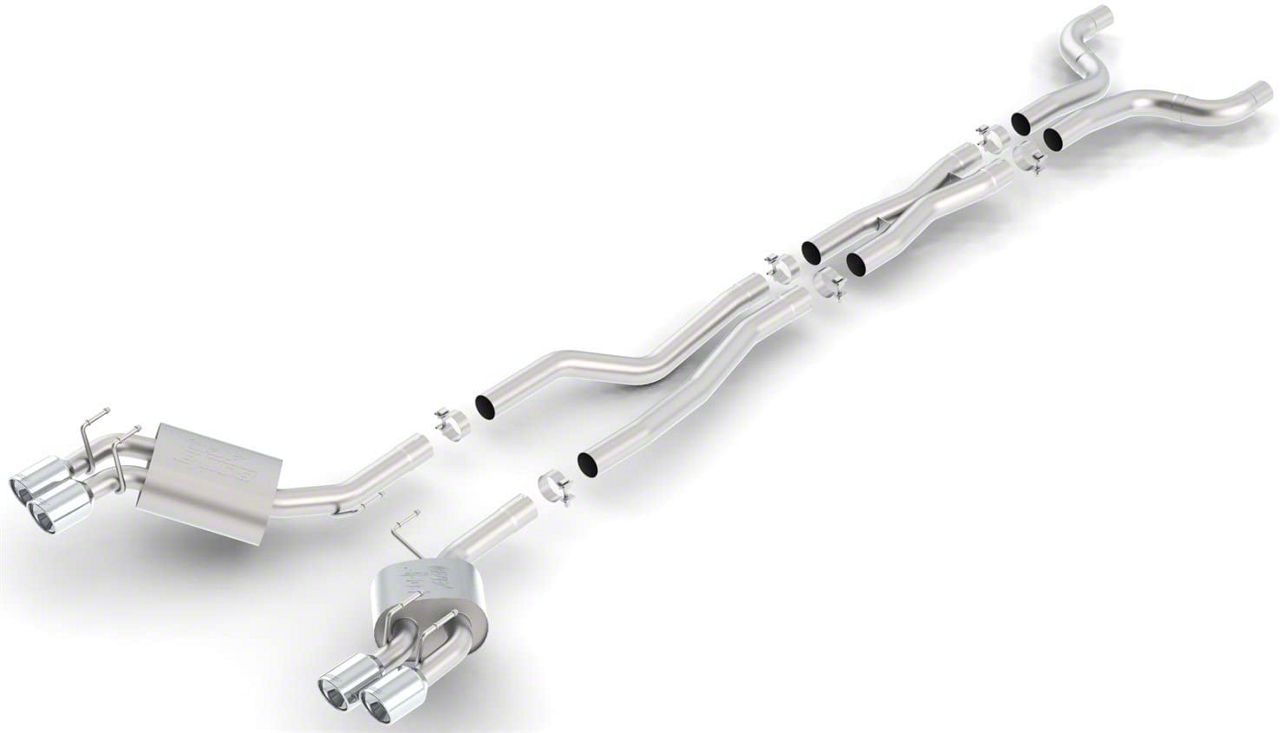 Direct Bolt-On Installation. Borla engineered their Cat-Back Exhaust to be a direct bolt-on upgrade replacement. This Exhaust System will easily mount in the stock location with no cutting or extra modifications required. Installation of this Cat-Back can be completed in about two to three hours with just basic hand tools. This Cat-Back will reuse the existing factory hangers for installation.