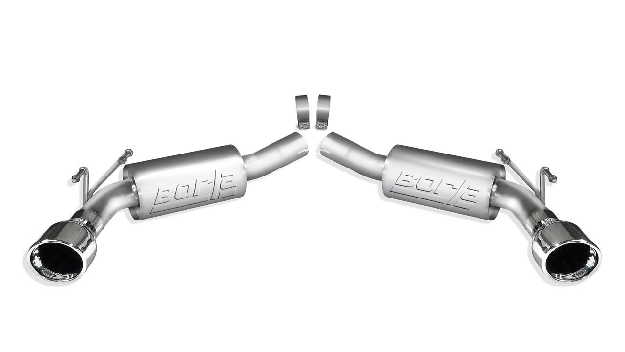 Premium Stainless Steel Construction. Borla manufactures their exhaust systems from premium 304 stainless steel tubing for superior strength and enduring corrosion resistance. Featuring ultra smooth mandrel bent 2.5-inch diameter piping and straight-through S-Type mufflers, this Borla Axle-Back will significantly out flow your Camaro's original factory exhaust system. This system also includes a pair of 4.5-inch polished T-304 stainless steel exhaust tips for impressive good looks.