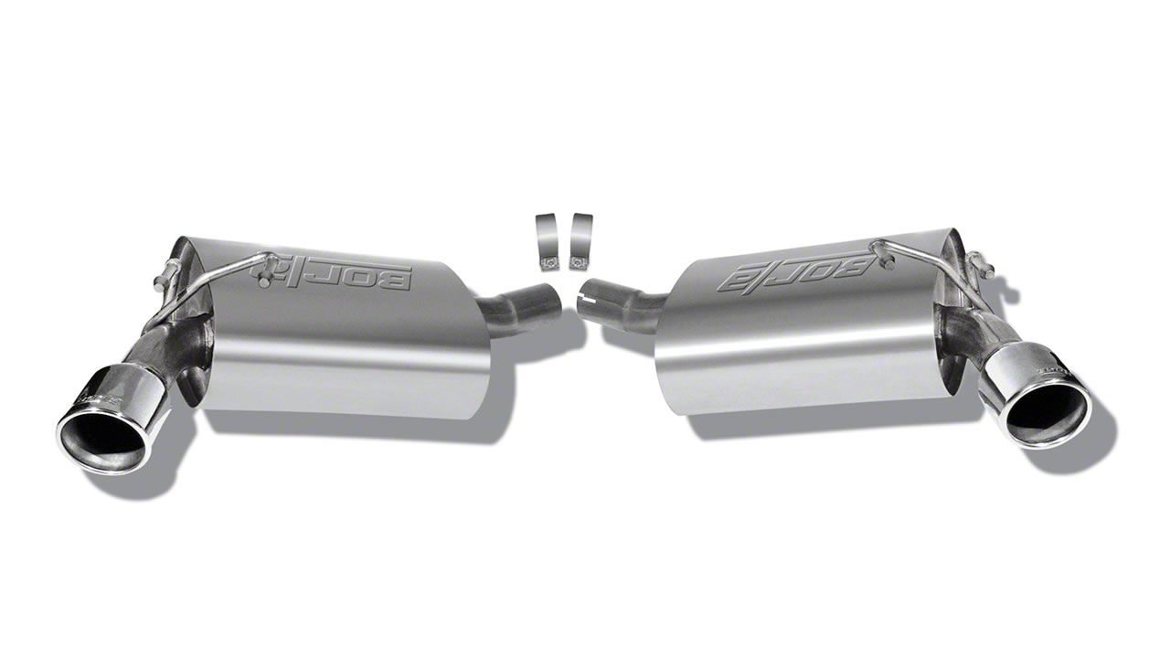 Premium Stainless Steel Construction. Borla manufactures their exhaust systems from premium 304 stainless steel tubing for superior strength and enduring corrosion resistance. Featuring ultra smooth mandrel bent 2.25-inch diameter piping and straight-through S-Type mufflers, this Borla Axle-Back will significantly out flow your Camaro's original factory exhaust system. This system also includes a pair of 3.5-inch polished T-304 stainless steel exhaust tips for impressive good looks.