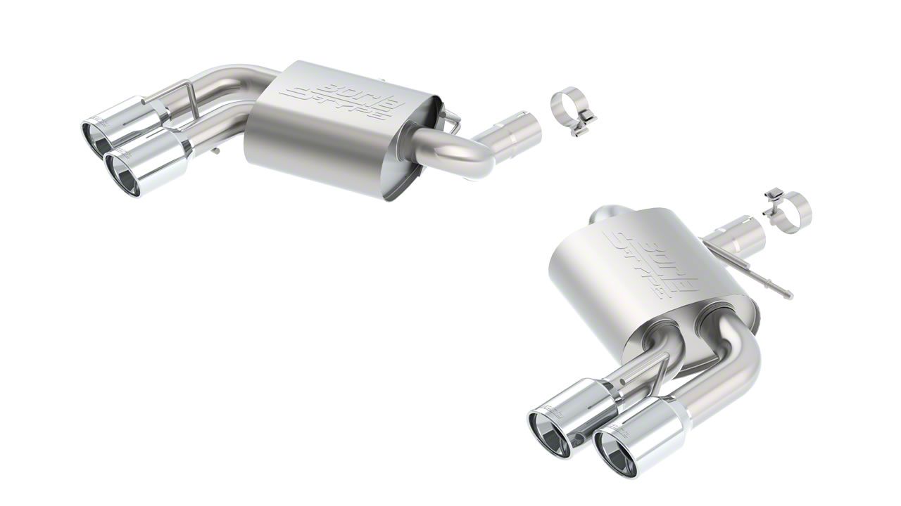 Premium Stainless Steel Construction. Borla manufactures their exhaust systems from premium 304 stainless steel tubing for superior strength and enduring corrosion resistance. Featuring ultra smooth mandrel bent 2.75-inch diameter piping and straight-through S-Type mufflers, this Borla Axle-Back will significantly out flow your Camaro's original factory exhaust system. This system also includes a pair of quad 4-inch polished T-304 stainless steel exhaust tips for impressive good looks.