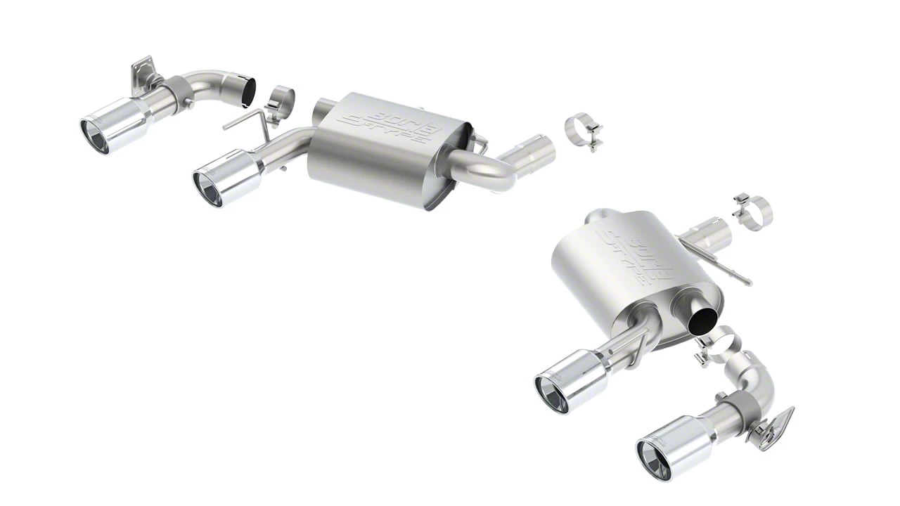 Premium Stainless Steel Construction. Borla manufactures their exhaust systems from premium 304 stainless steel tubing for superior strength and enduring corrosion resistance. Featuring ultra smooth mandrel bent 2.75-inch diameter piping and straight-through S-Type mufflers, this Borla Axle-Back will significantly out flow your Camaro's original factory exhaust system. This system also includes a pair of quad 4-inch polished T-304 stainless steel exhaust tips for impressive good looks.