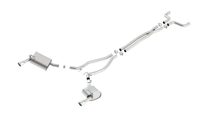 Premium Stainless Steel Construction. Borla manufactures their exhaust systems from premium 304 stainless steel tubing for superior strength and enduring corrosion resistance. Featuring ultra smooth mandrel bent 2.25-inch diameter piping and straight-through S-Type mufflers, this Borla Cat-Back will significantly out flow your Camaro's original factory exhaust system. This system also includes a pair of 4.5-inch polished T-304 stainless steel exhaust tips for impressive good looks.