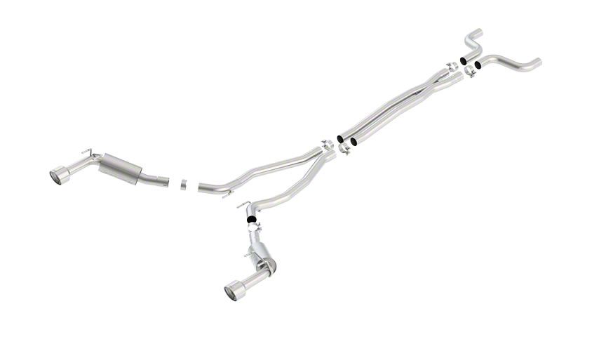 Direct Bolt-On Installation. Borla engineered their Cat-Back Exhaust to be a direct bolt-on upgrade replacement. This Exhaust System will easily mount in the stock location with no cutting or extra modifications required. Installation of this Cat-Back can be completed in about two to three hours with just basic hand tools. This Cat-Back will reuse the existing factory hangers for installation.