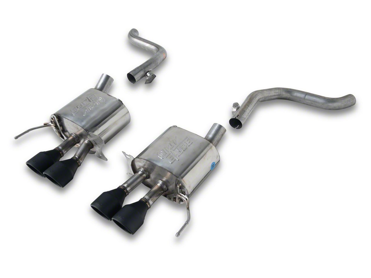 Gets the Job Done. The Borla ATAK Axle-Back Exhaust with Intercooled Ceramic Black Tips is a high-performance product that is designed to enhance your vehicle's power and efficiency. With an increase in horsepower and torque of up to 10%, this exhaust system is a great choice for drivers who want to get the most out of their vehicle. The mandrel-bent tubing ensures optimal exhaust flow, which results in improved engine performance and a sporty sound that will turn heads. Additionally, it ensures better fuel economy, making it a cost-effective upgrade for your vehicle.